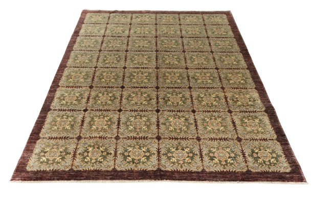 Crafted from hand-spun wool and dyed with sustainable dyes, the Chobi Hand-Knotted Wool Rug radiates earthy elegance and timeless charm. The intricate patterns and rich, natural tones make it a striking centerpiece in any room. Each rug is hand-knotted with precision by artisans, ensuring its uniqueness and beauty. Soft, durable, and long-lasting, the Chobi rug offers a blend of comfort and sophistication that will enhance your living space for years to come.