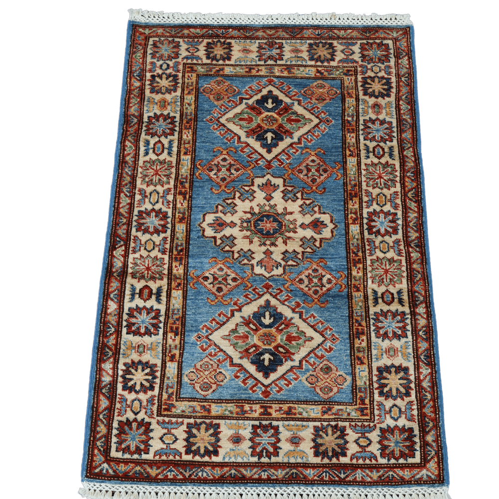 The exquisite Kazak hand-knotted wool rug combines the rich heritage of the Caucasus region with exceptional craftsmanship. Featuring vibrant hues of red, blue, and ivory, this rug is adorned with bold geometric patterns and traditional motifs that tell the story of Kazak culture. Handwoven by skilled artisans using high-quality wool, the rug offers both beauty and durability, making it a lasting addition to any space. Perfect for adding warmth, texture, and a touch of cultural sophistication, this Kazak rug complements a wide range of interior styles, from modern to classic.