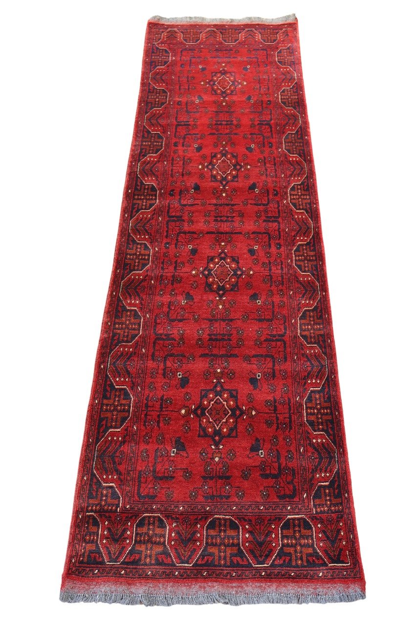Elevate your interior with the stunning artistry of this exquisite Khal Mohammadi tribal rug. Meticulously handcrafted in Afghanistan, this rug showcases the traditional bold red and blue tones that make Khal Mohammadi rugs instantly recognizable. Each rug is woven from 100% natural wool, offering a luxurious, soft feel that’s both durable and resistant to wear.
