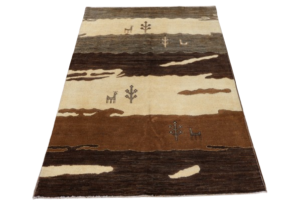 This Gabbah hand-knotted rug, crafted from high-quality wool, features rich, traditional patterns that bring warmth and sophistication to any room. A timeless piece that combines durability and artistry for your home. This Gabbeh rug is a stunning representation of traditional Persian art and craftsmanship. Hand knotted in Afghanistan using natural wool fibers.