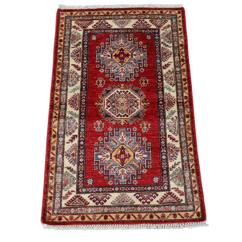 The Kazak wool rug with an intricate medallion design is a classic piece that highlights the beauty of traditional weaving techniques. Featuring a central medallion motif surrounded by geometric borders, this rug is hand-knotted by expert artisans using the finest wool for both durability and softness. Rich in color, with shades of red, blue, and ivory, this rug brings a touch of luxury and warmth to any space. Its detailed design and cultural significance make it the perfect addition to elevate both modern and classic interiors.