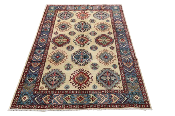 The Rustic Charm Kazak hand-knotted wool rug is a captivating piece that brings the essence of traditional craftsmanship into your home. Featuring a blend of bold geometric shapes and tribal motifs, this rug is woven with vibrant colors of deep reds, blues, and earthy tones that evoke warmth and character. Made from high-quality wool, the rug is both soft to the touch and durable, perfect for enduring high-traffic areas. The intricate patterns and rich color palette offer a timeless, rustic charm that enhances any space, adding depth and a sense of heritage to your home decor.