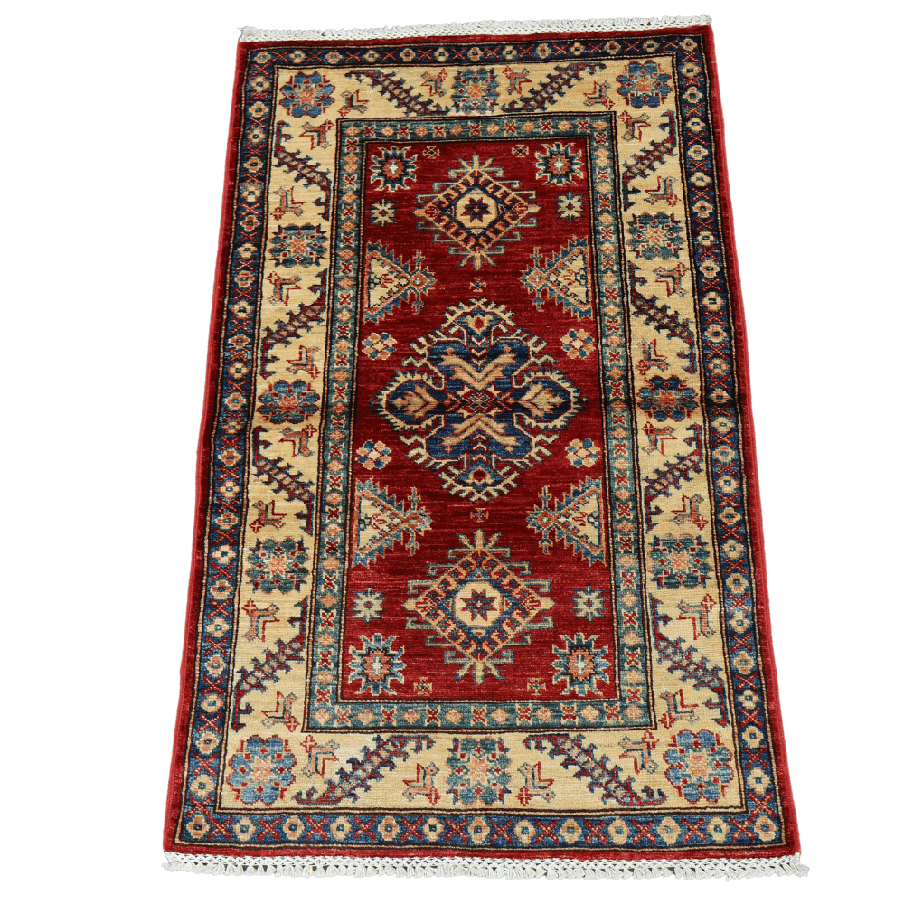 The vibrant Kazak hand-knotted wool rug brings a burst of color and cultural history to any room. Expertly crafted by artisans from the Caucasus region, this rug features bold geometric patterns and traditional motifs in rich shades of red, navy, and ivory. Made from premium wool, it offers both softness and durability, making it perfect for high-traffic areas while maintaining its luxurious feel. With its striking design and timeless appeal, this Kazak rug adds warmth, texture, and a sense of heritage, making it a standout addition to your home decor.